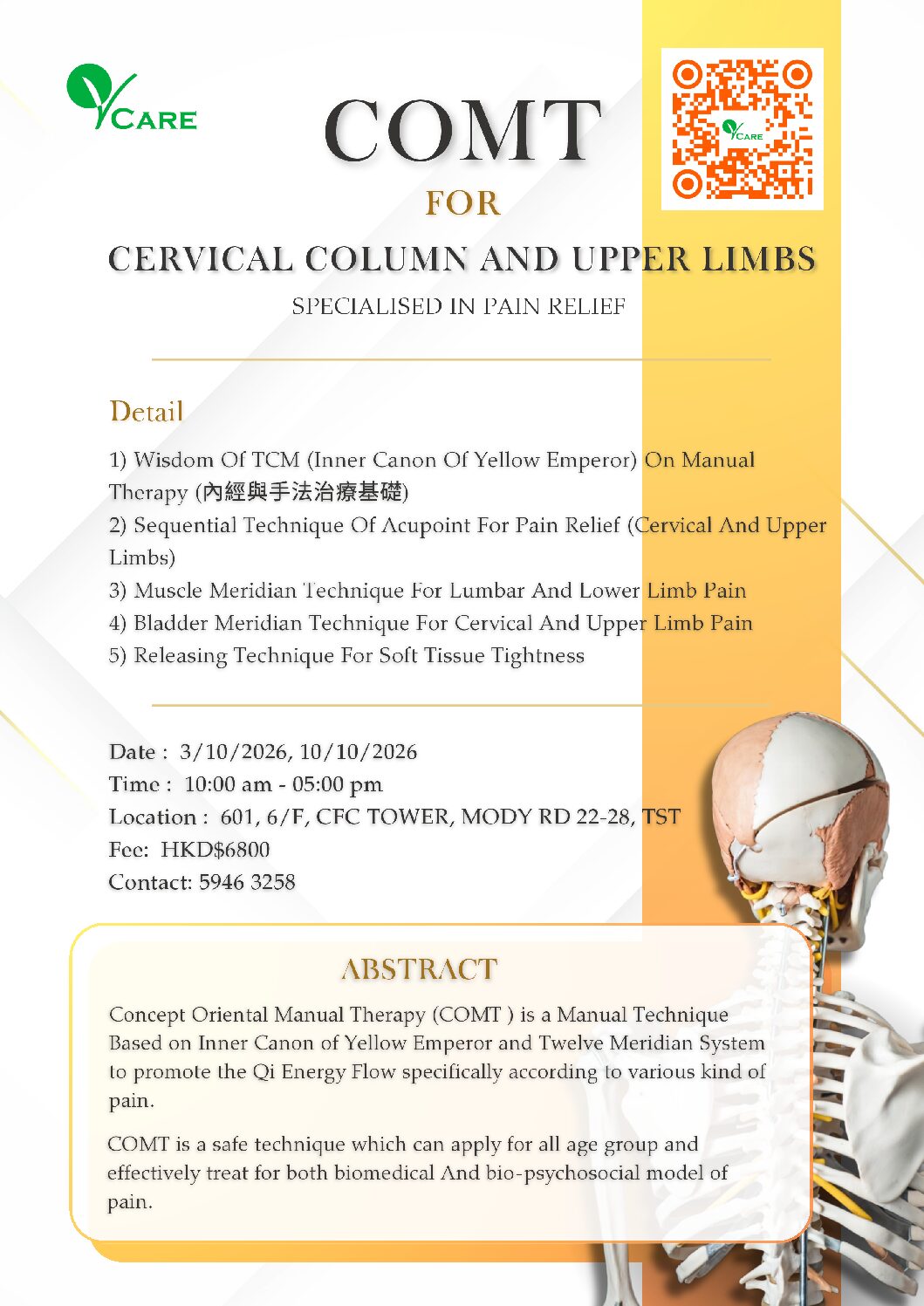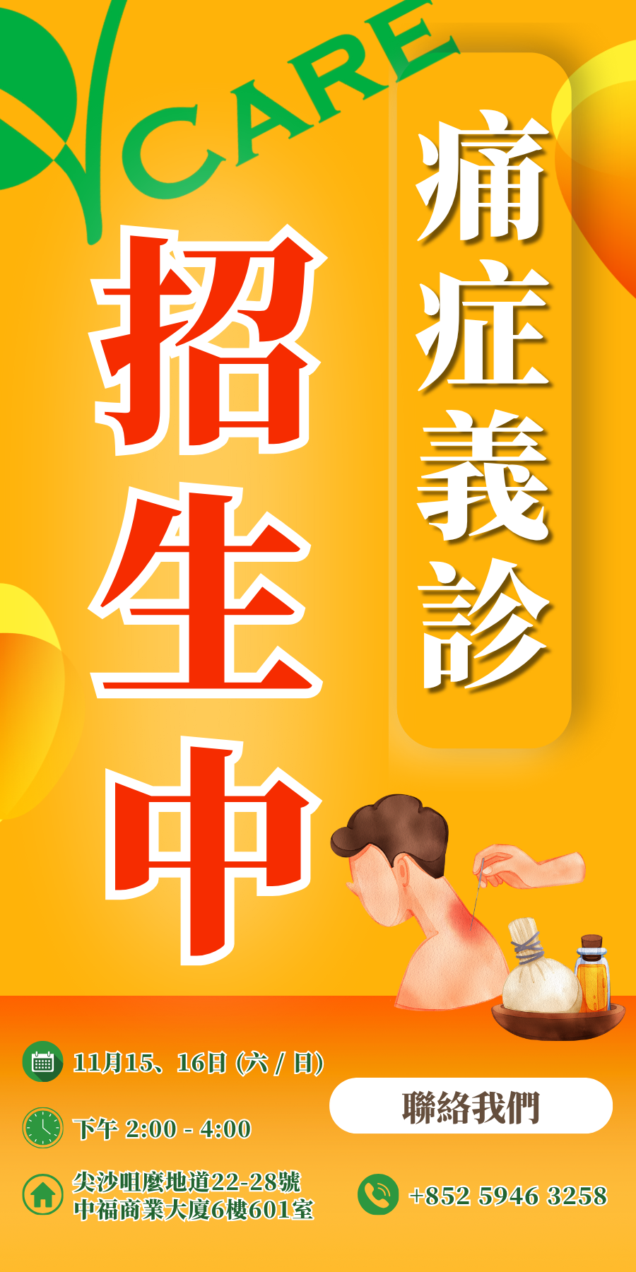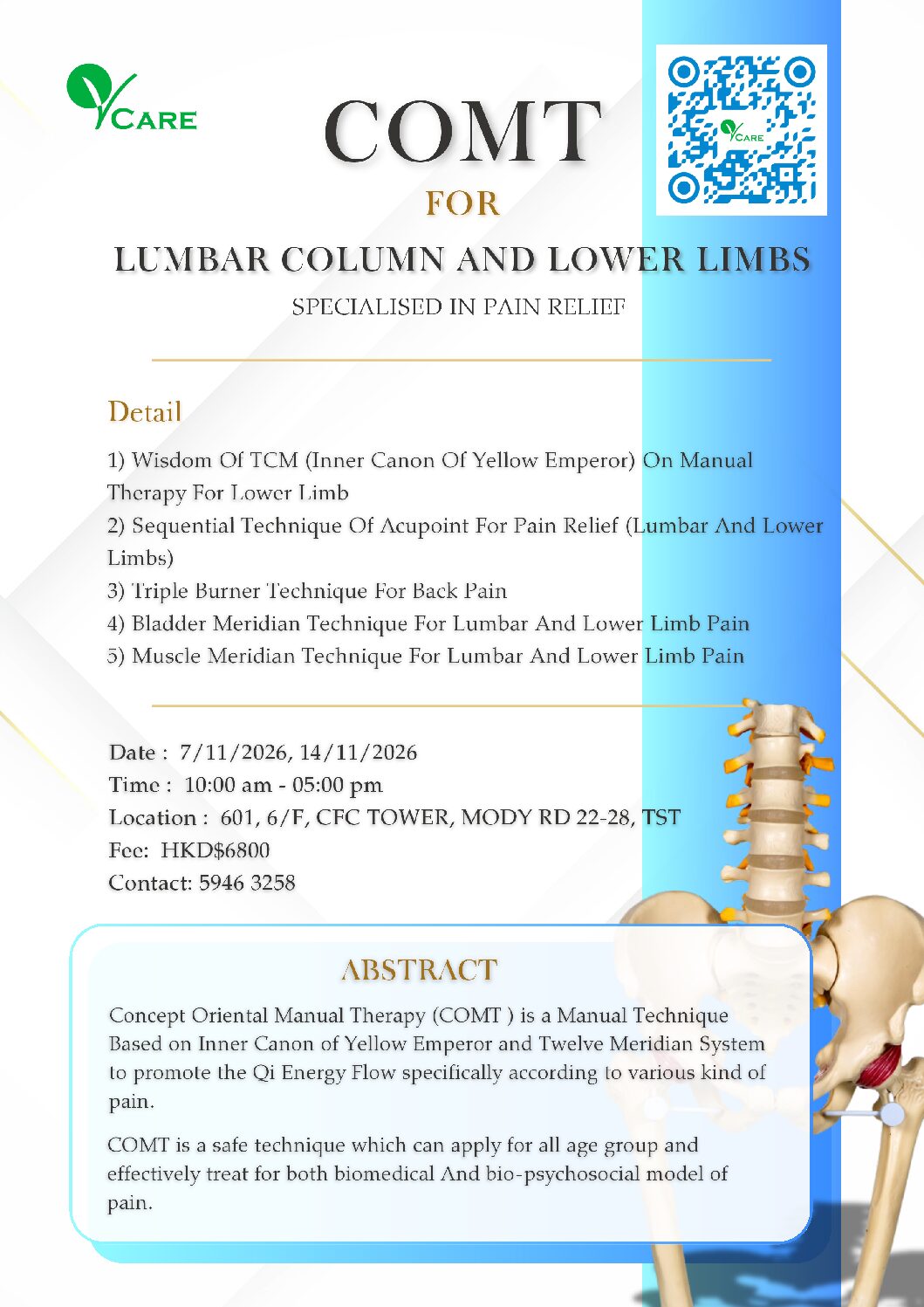 在香港共有五間分店,分別位於中環、尖沙咀601室、尖沙咀604室、觀塘及荃灣。本中心以中西結合的理念作為治療痛症的方向,令物理治療服務更全面及更有效率。我們的物理治療專業服務包括: