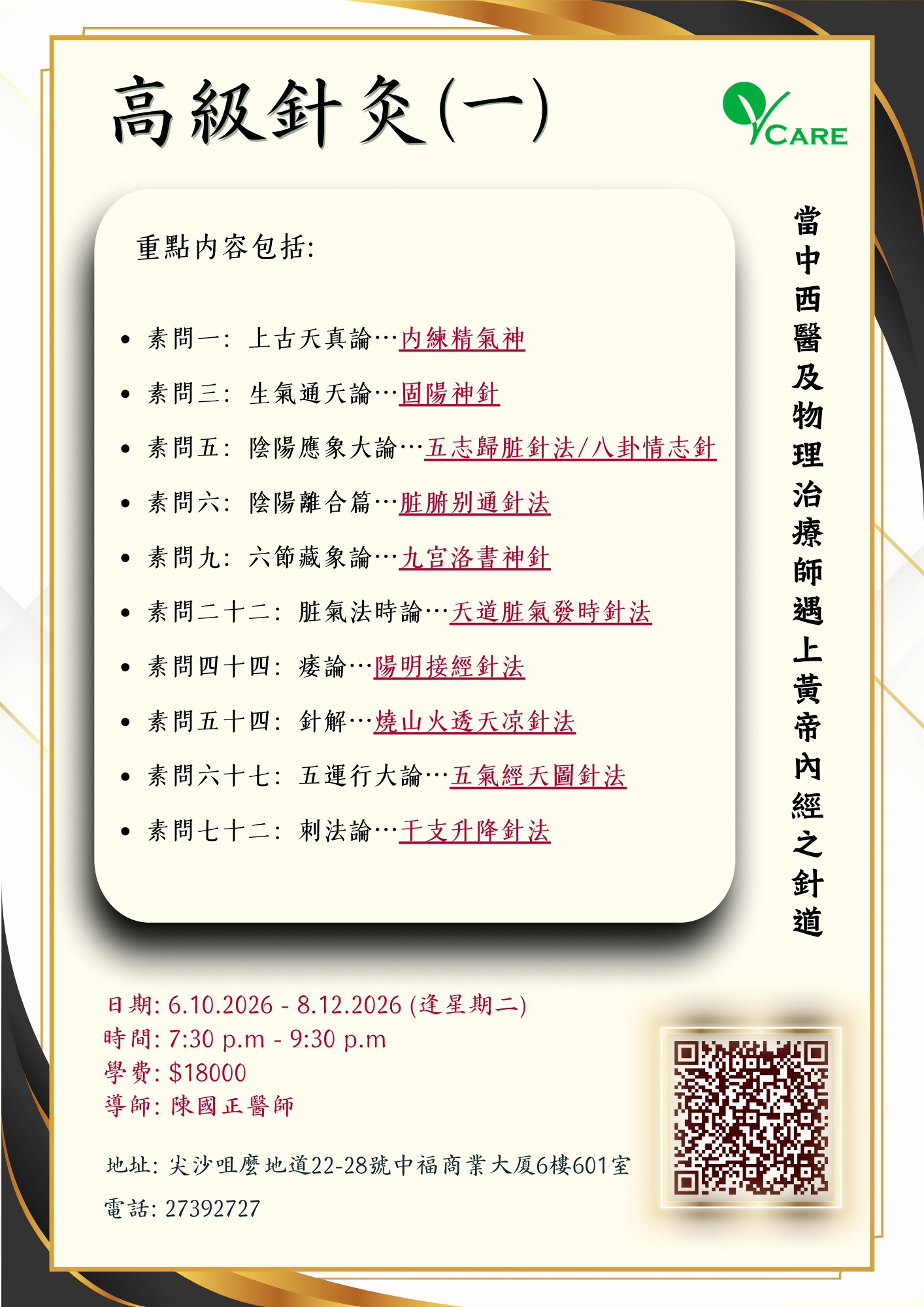 針灸、刮痧、拔鑵、中式推拿手法、西式整脊手法、各類先進的物理治療設備及享用澳洲入口Dance Medicine Association普拉提運動(Pilates)專設之機械(Reformer)訓練。